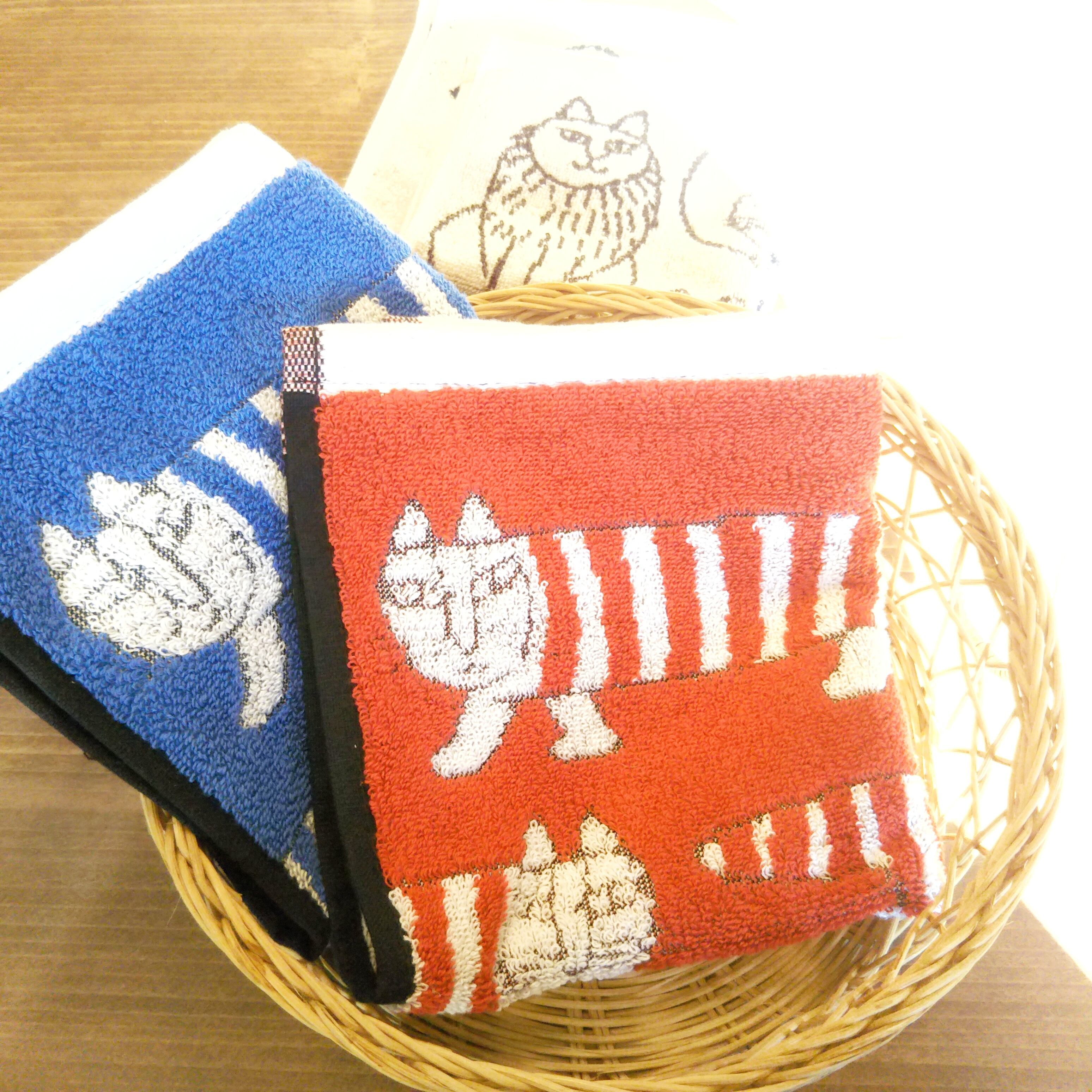 北欧の陶芸家、リサ・ラーソンの有名な猫のイラストでデザインされたタオル。