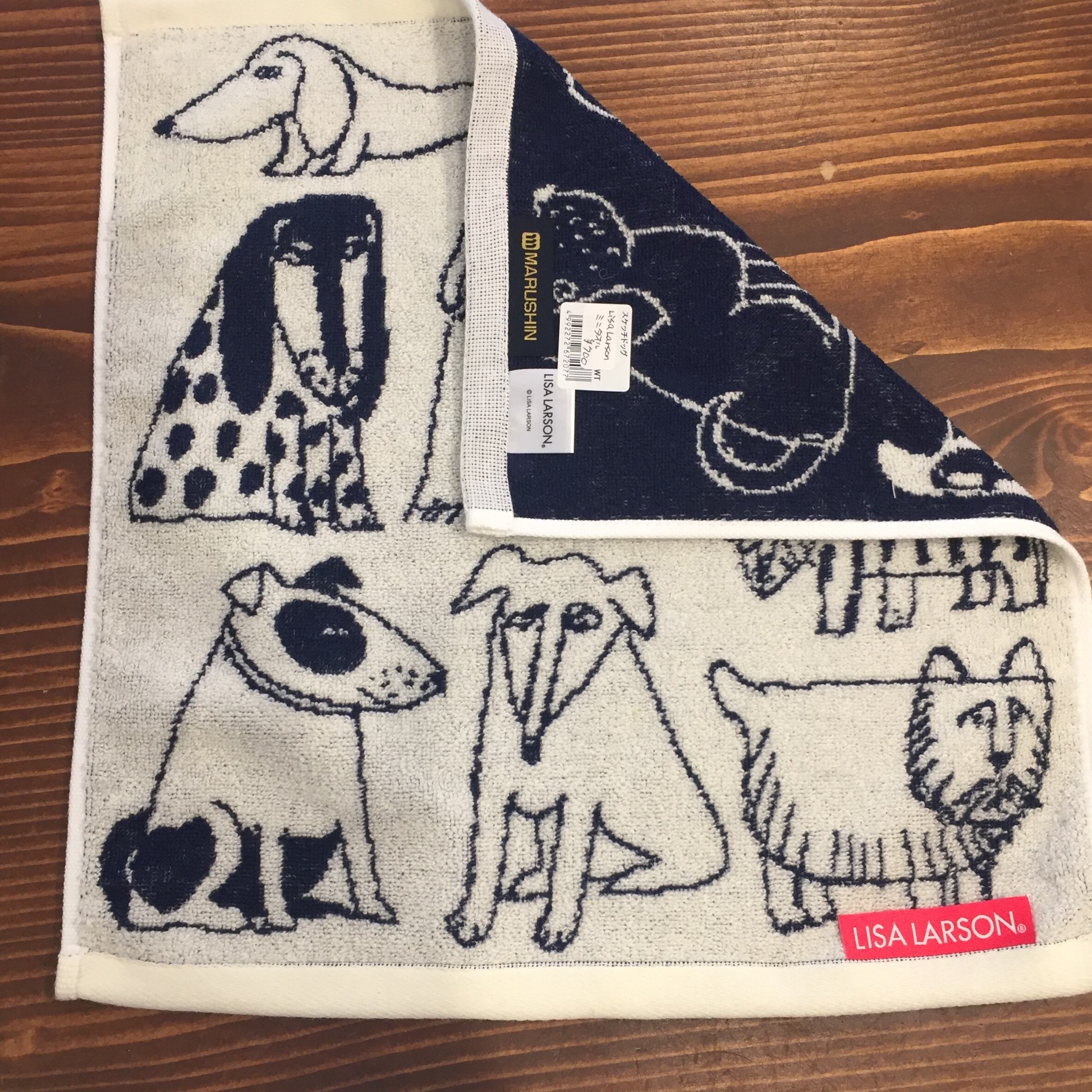 北欧の陶芸家、リサ・ラーソンのイラストを使用したタオル。 リサ・ラーソンといえば猫のイメージが強いですが、こちらは個性豊かな犬のスケッチイラストを集めたタオルです。 サイズ:約34×36cm